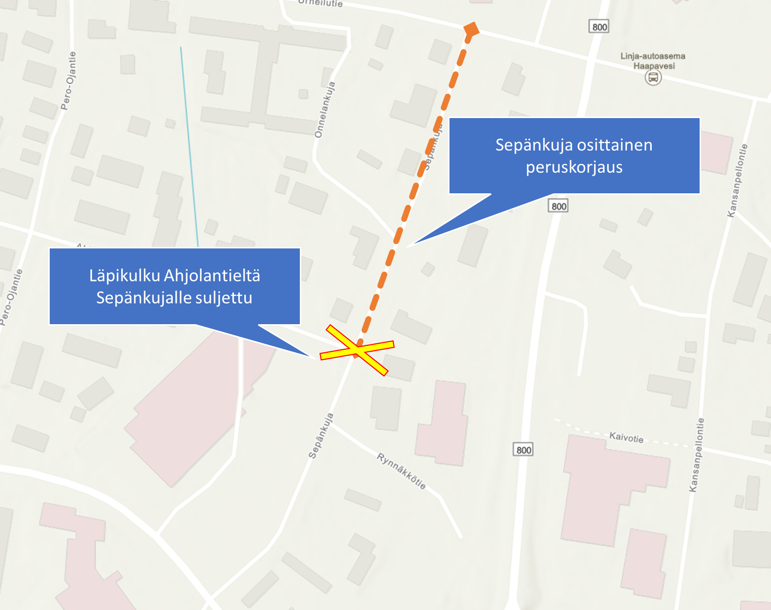 Ahjolantien ja Sepänkujan risteys joudutaan sulkemaan läpikululta rakentamisen ajaksi.