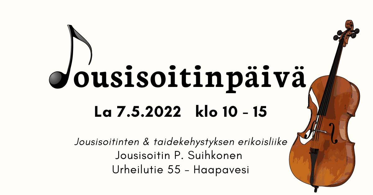 Lauantaina 7.5.2022 vietämme Haapaveden omassa musiikkiliikkeessä sekä taidekehystämöllä keväistä Jousisoitinpäivää klo 10 - 15 välisenä aikana!