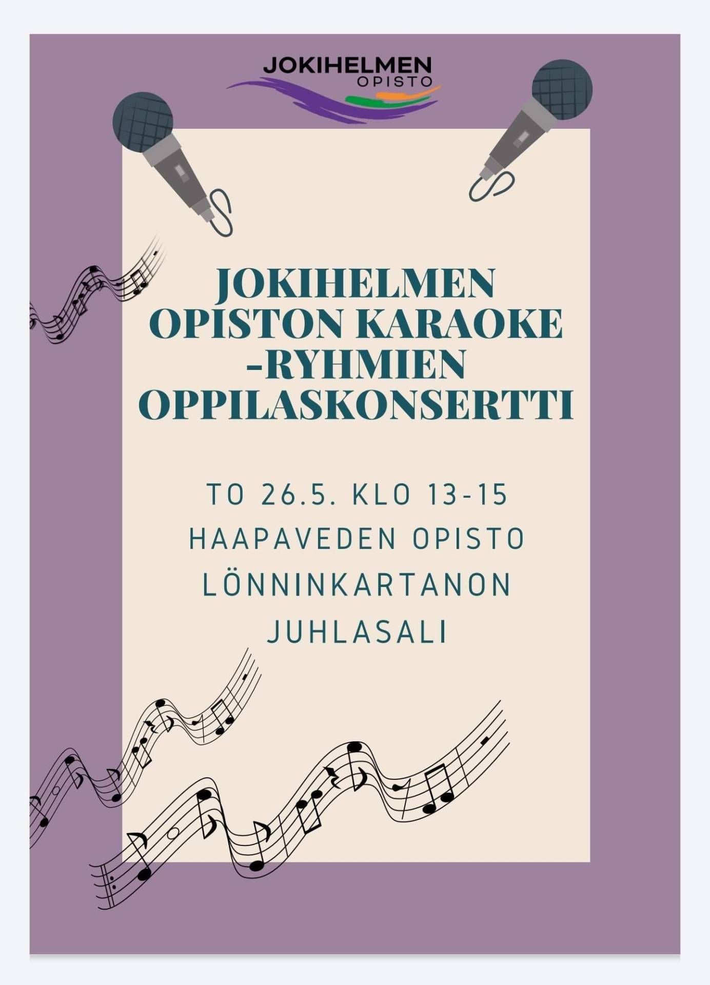 Jokihelmen Opiston karaokelaulajien kevätkonsertti.