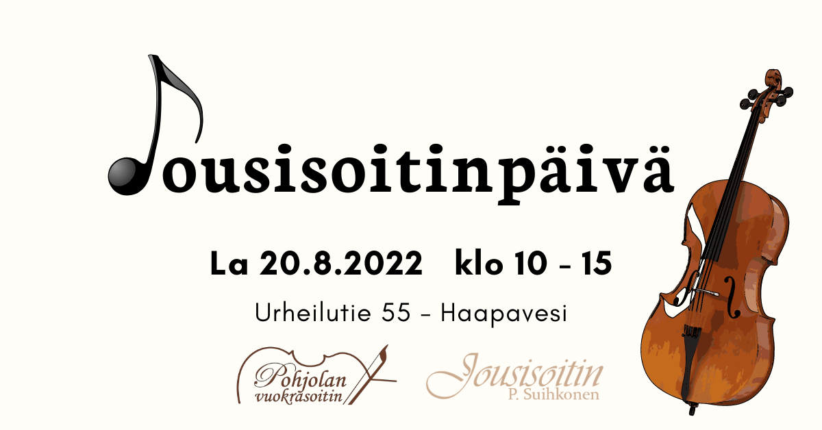 Syyslukukauden käynnistyessä Jousisoitin yhdessä Pohjolan Vuokrasoittimen kanssa järjestää jousisoitinpäivän la 20.8.22 klo 10-15.