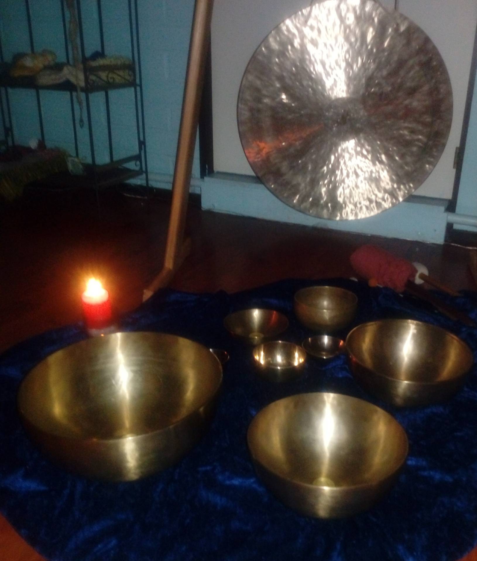 äänimaljoilla ja gongilla Hoitohelmessä Hakakuja 8