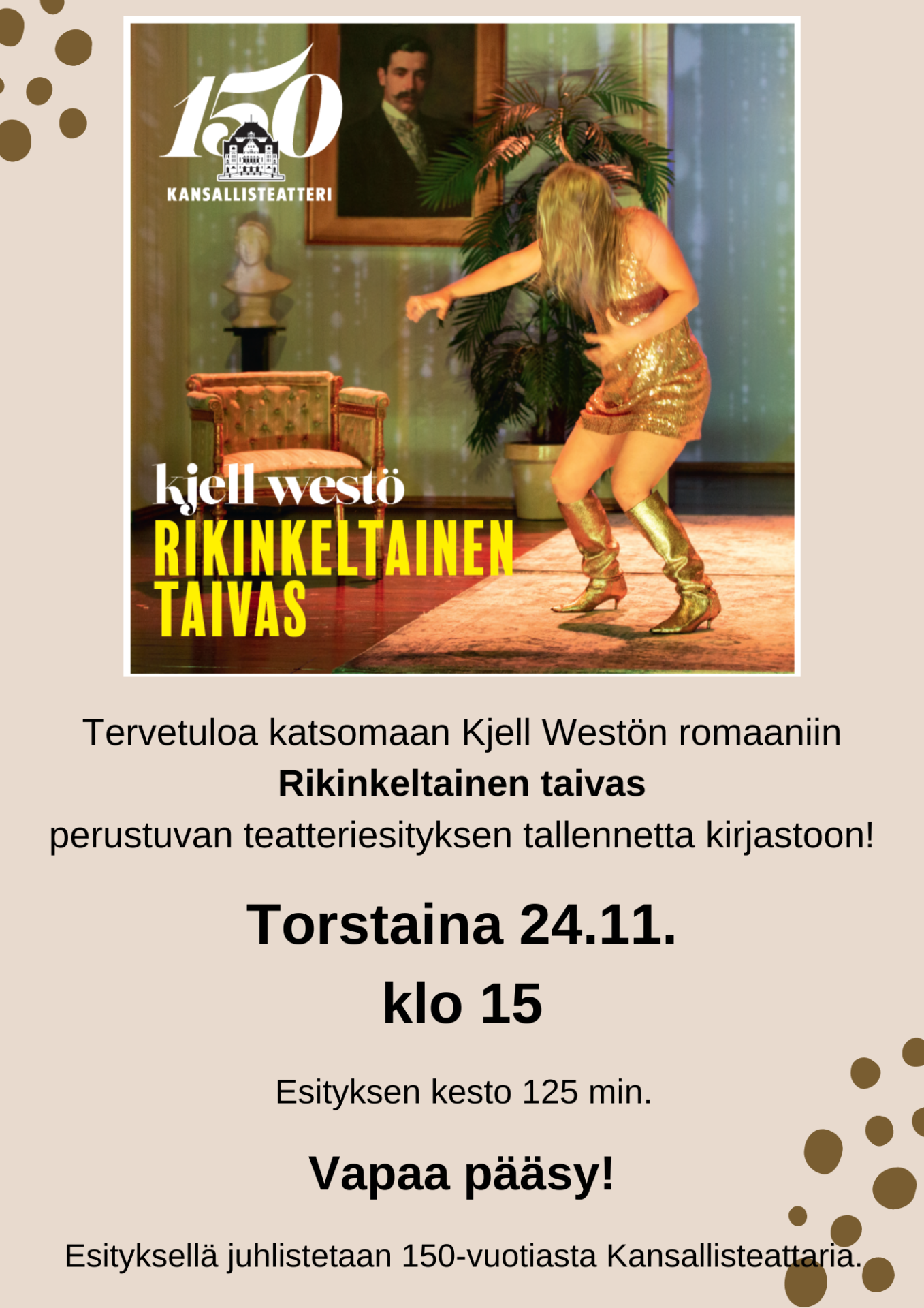 Rikinkeltainen taivas- teatteritaltiointi kirjastolla