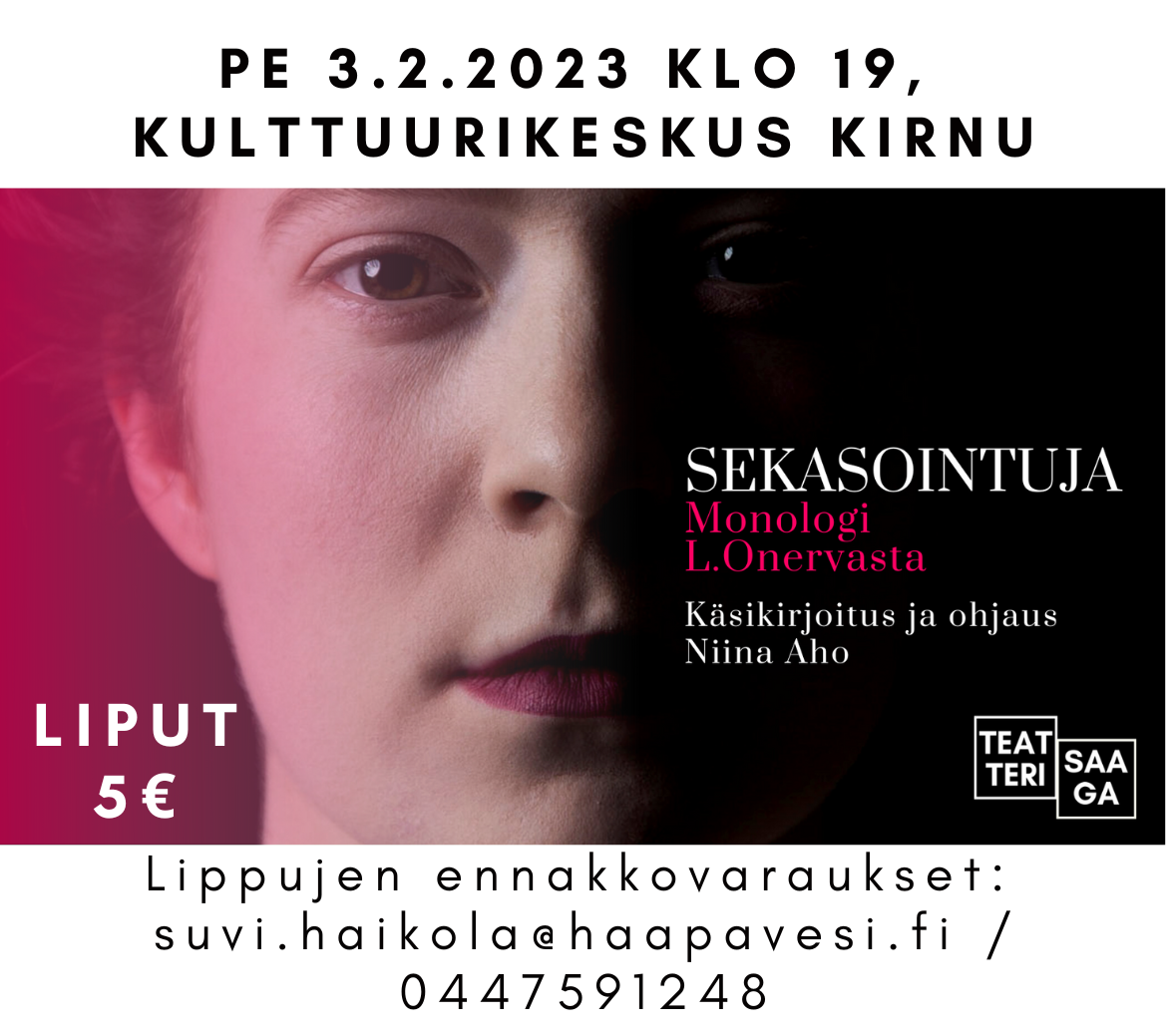 Sekasointuja-monologi nyt Kulttuurikeskus Kirnussa perjantaina 3.2.2023 klo 19.