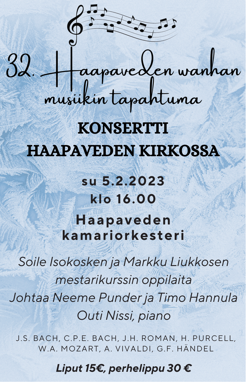 Konsertti Haapaveden kirkossa 5.2. 2023 klo 16.00
