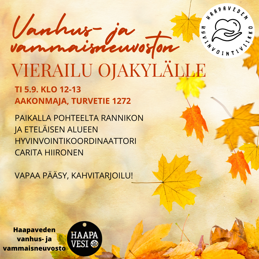 Tervetuloa jututtamaan vanhus- ja vammaisneuvoston edustajia Aakonmajalle tiistaina 5.9. klo 12-13!