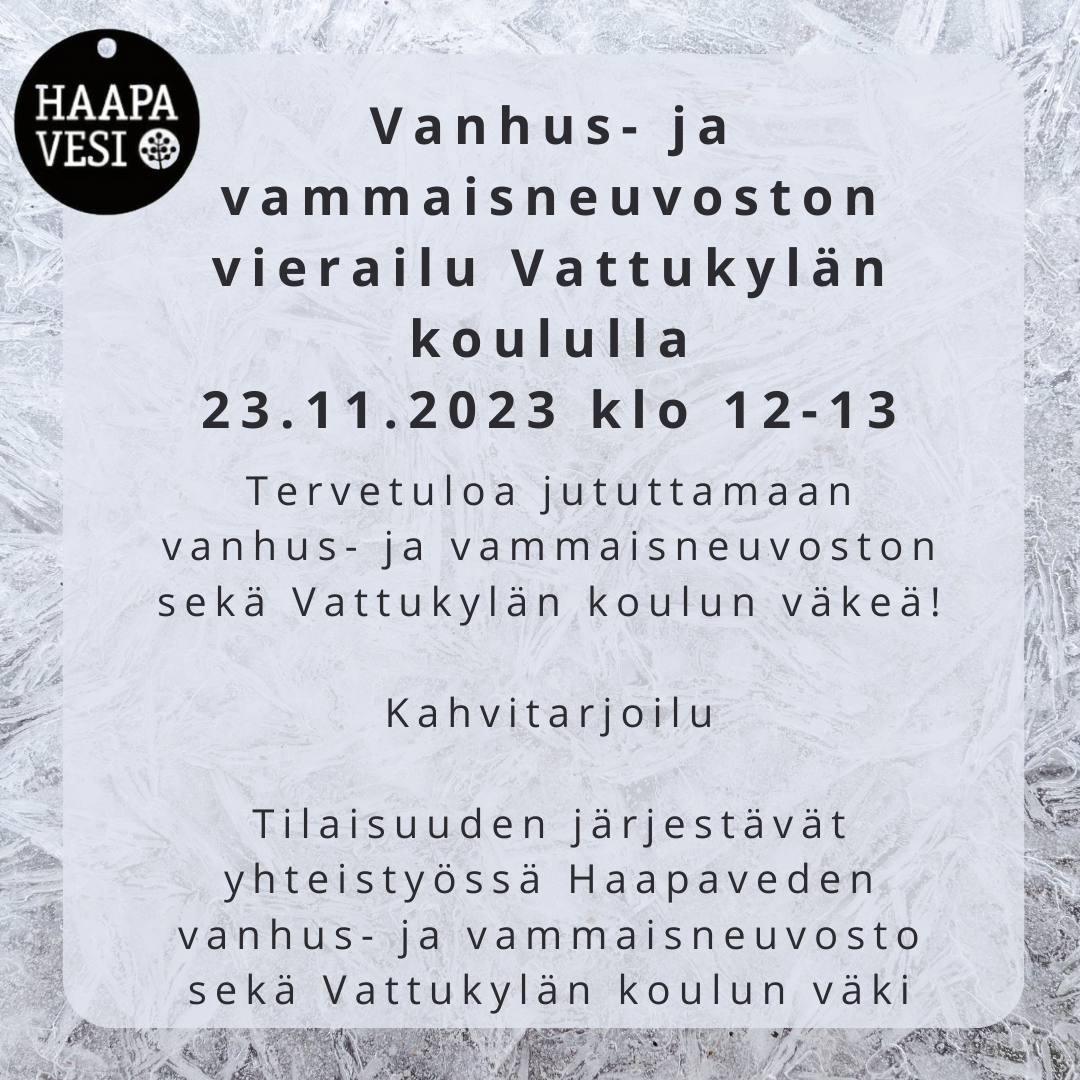 Haapaveden vanhus- ja vammaisneuvosto saapuu kylävierailulle Vattukylän koululle torstaina 23.11.2023 klo 12-13!