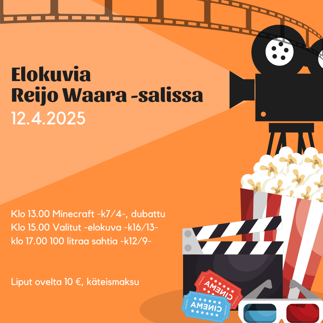 Tulossa jälleen elokuvia Reijo Waara -salissa lauantaina 12.4.2025! 🎥