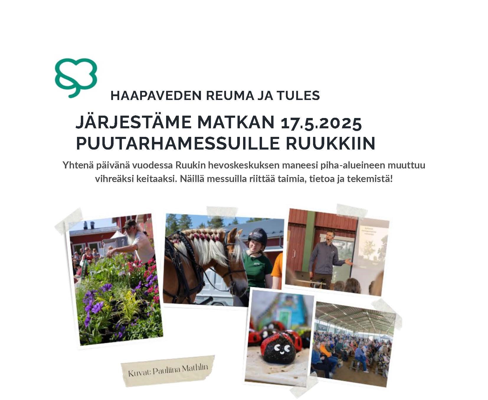 Haapaveden Reuma ja Tules järjestää matkan Ruukkiin puutarhamessuille 17.5.2025.