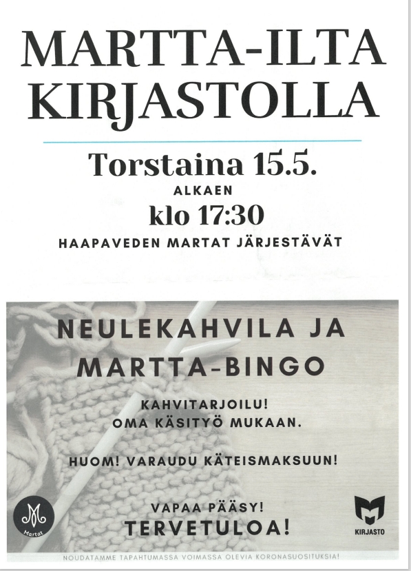 Ohjelmassa neulekahvila ja Martta-bingo.