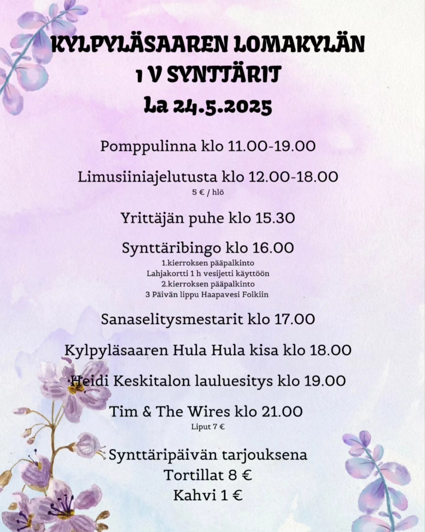🎉 Tervetuloa KylpylĂ€saaren lomakylĂ€n 1-vuotissynttĂ€reille! 🎉