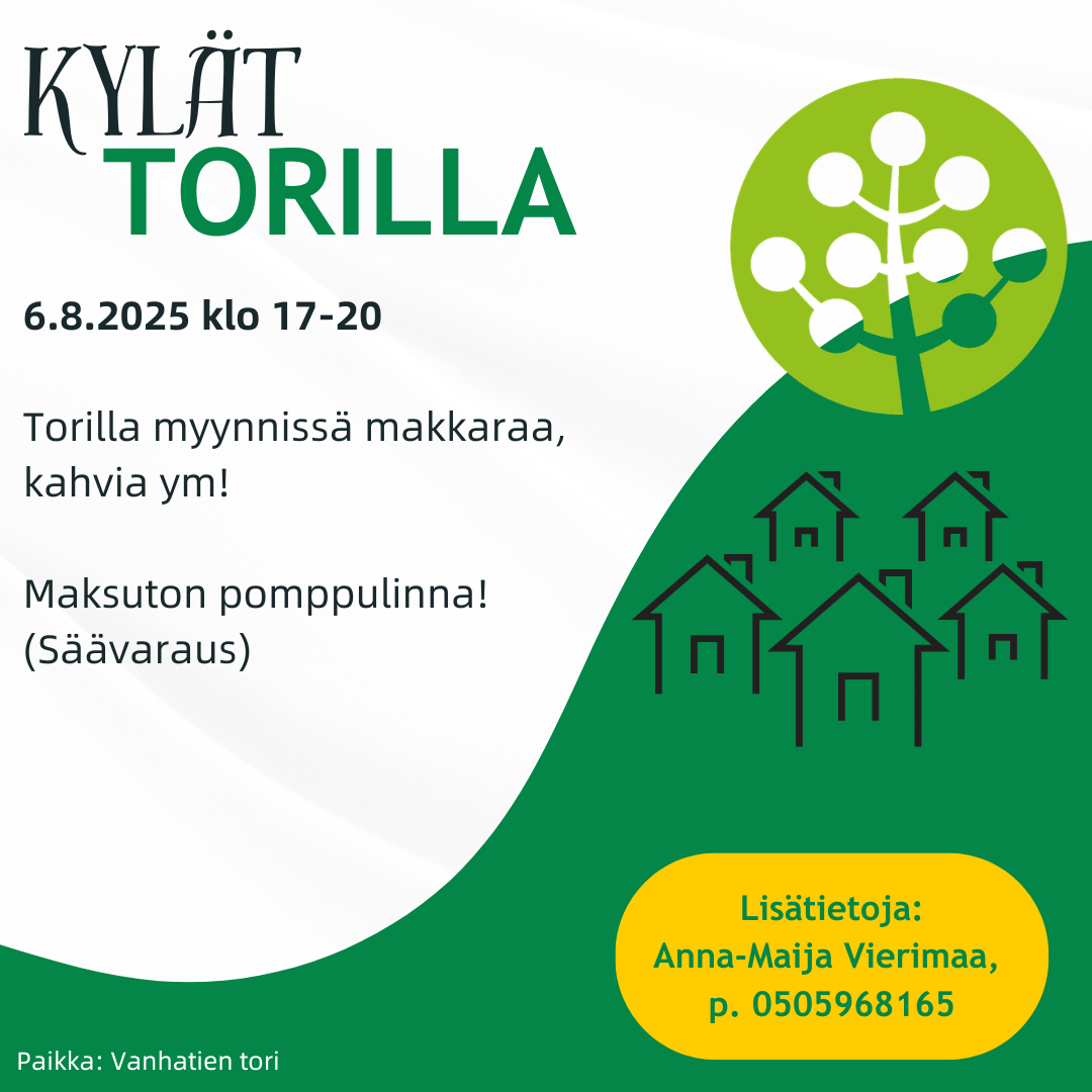 Kylät torilla -tapahtuma keskiviikkona 6.8.2025 klo 17-20 Vanhatien torilla.