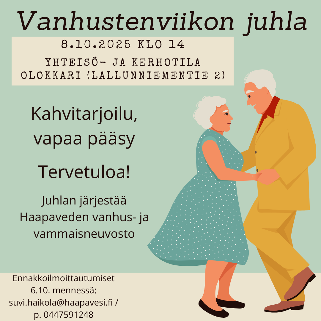 Tervetuloa Vanhustenviikon juhlaan keskiviikkona 8.10.2025 klo 14 yhteisö- ja kerhotila Olokkarille.