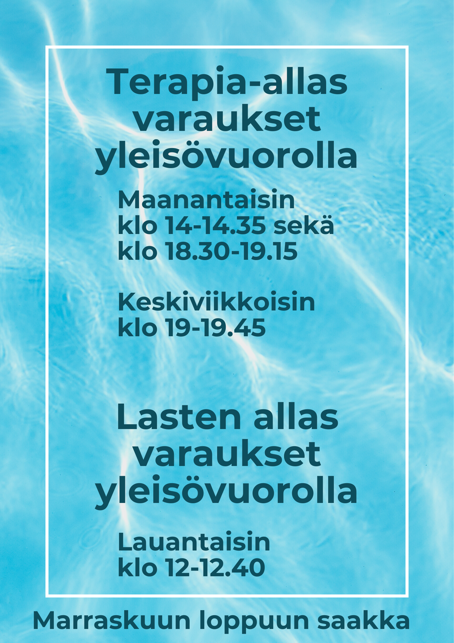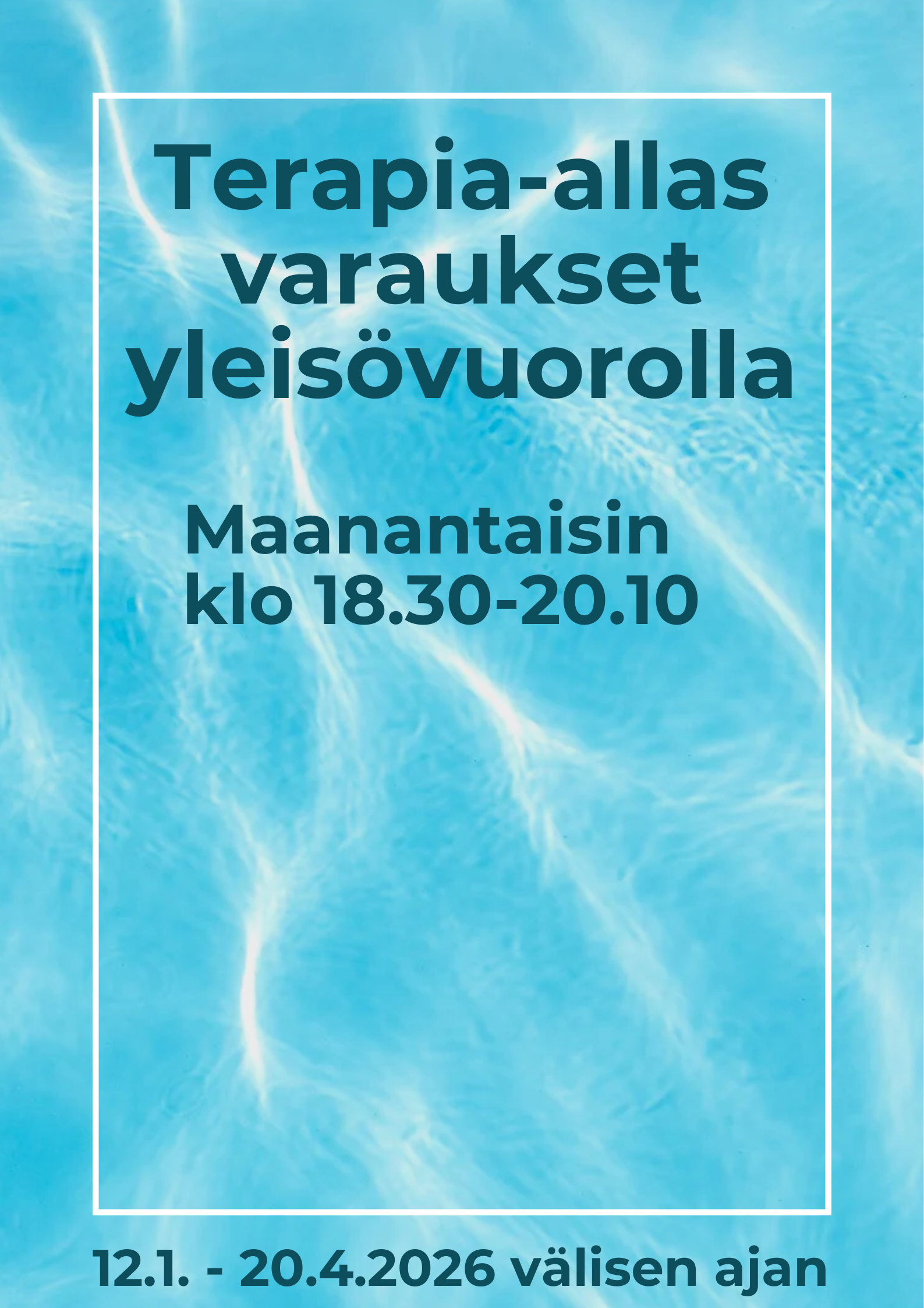 HUOM! Terapia-altaassa voi olla myös muita yksittäisiä varauksia yleisövuorolla.