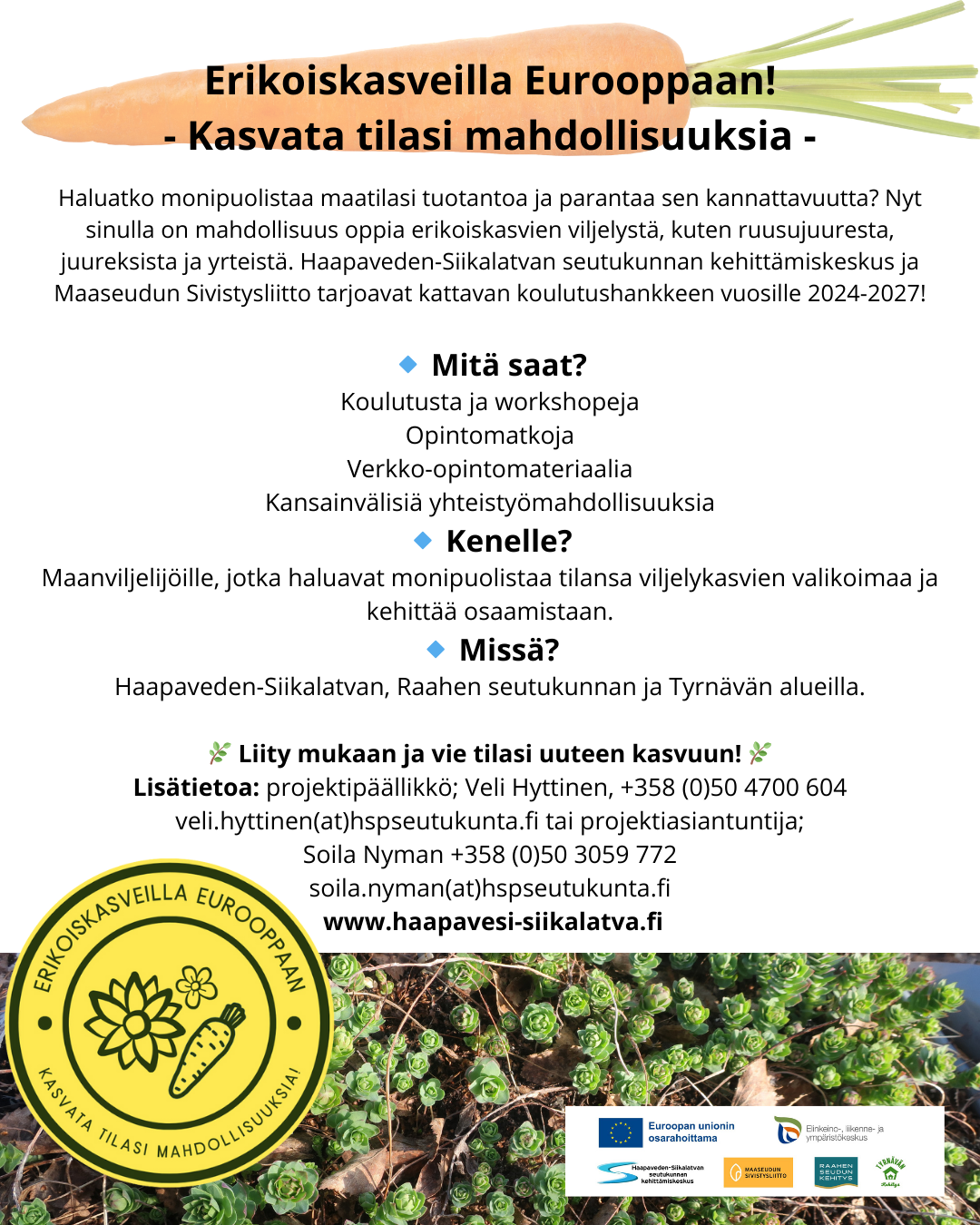 Haapaveden-Siikalatvan seutukunnan kehittämiskeskus tiedottaa: Erikoiskasveilla Eurooppaan! Kasvata tilasi mahdollisuuksia