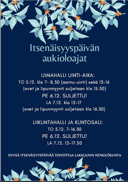 Uimahalli Lakkuunin aukioloajat viikolle 49