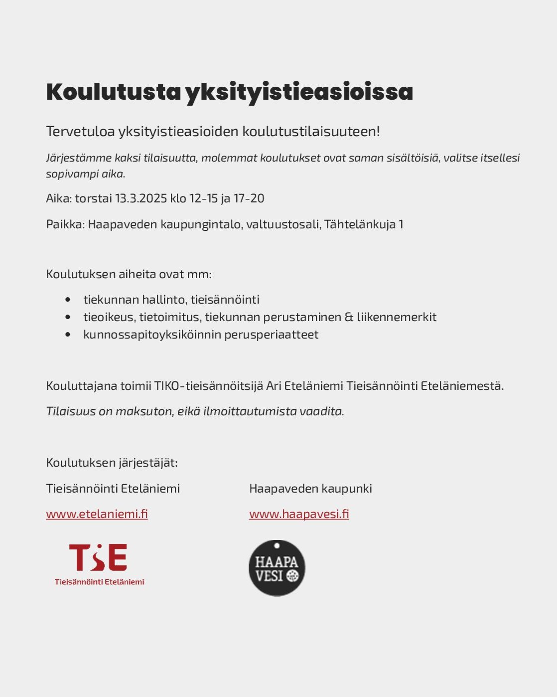 Haapaveden kaupungin tekninen toimi pyytää tarjouksia Haapaveden kaupungin omistamien kiinteistöjen pihojen lumitöistä kausille syksy 2025 – kevät 2026, syksy 2026 - kevät 2027 ja syksy 2027 -kevät 2028 + optio kausi.