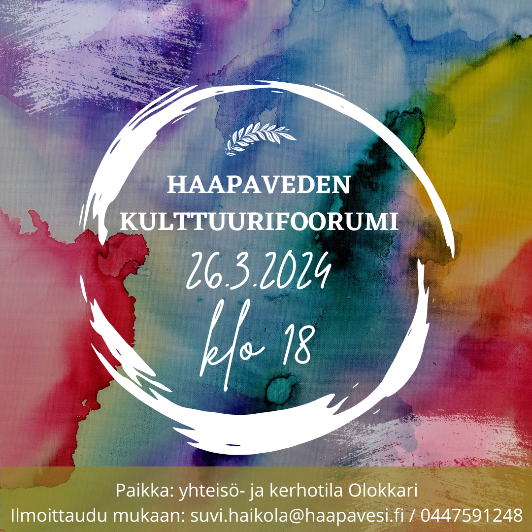 Tervetuloa Kulttuurifoorumiin keskustelemaan haapavetisestä kulttuurista tiistaina 26.3.2024 klo 18 yhteisö- ja kerhotila Olokkarille!