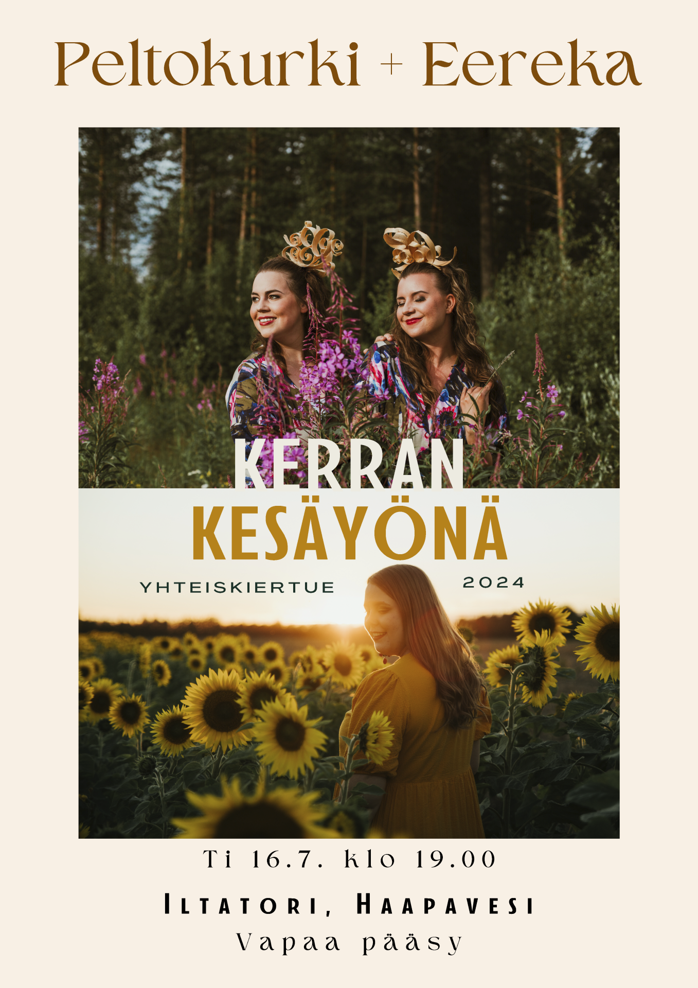 Peltokurki ja Eereka kiertävät Suomea kesällä 2024 molempien yhtyeiden musiikkia yhdistelevällä kesäkiertueella. Yhteiskiertueella yhdistyvät kesä, tarinankerronta, runollisuus ja kolmen laulaja-lauluntekijän heleät yhteisharmoniat. Keikoilla kuullaan sekä Peltokurjen että Eerekan tuotantoa yhteisillä sovituksilla ja tarkkaan valittuja kesäisiä cover-kappaleita, jotka sitovat kappaleiden teemat yhteen. Kiertueen keikkapaikkoina toimivat idylliset ja uniikit miljööt, joissa saa uppoutua keinuviin kesän säveliin ja herkkään tunnelmaan.