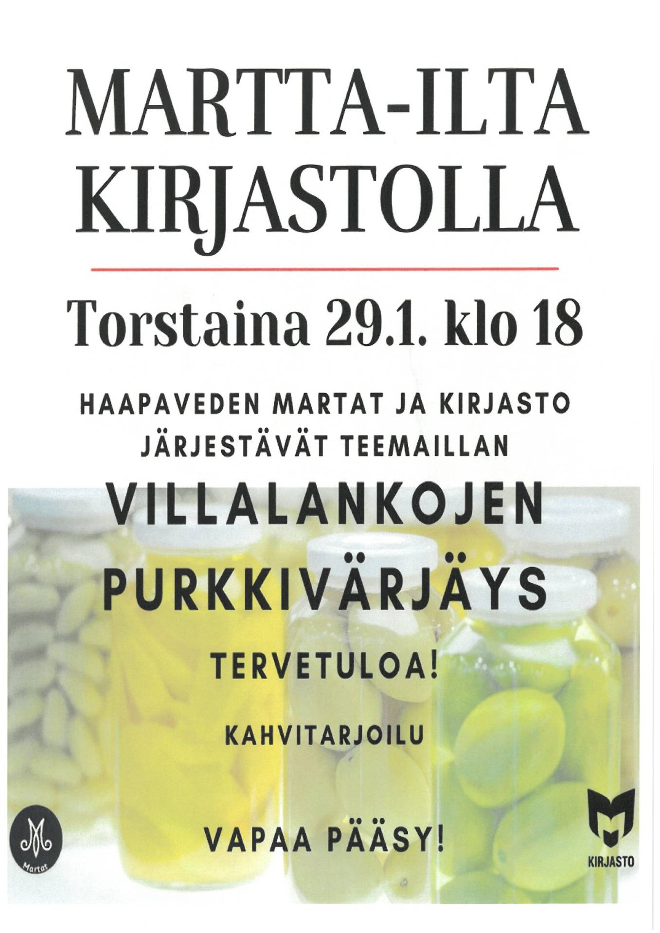 Martta-ilta kirjastolla torstaina 29.1.2026 klo 18.00.