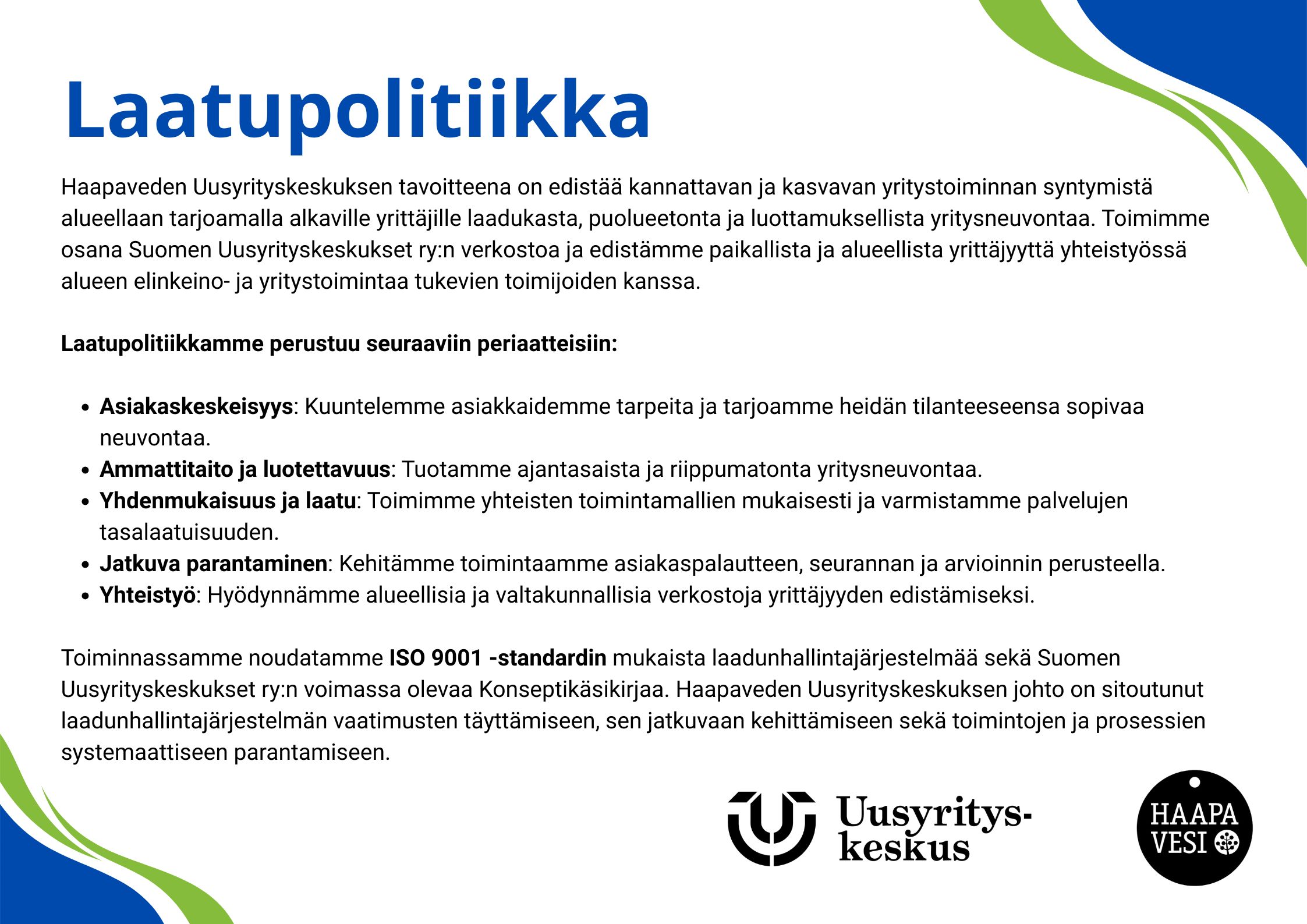 Haapavesi on elinvoimainen ja yrittäjäystävällinen kaupunki Pohjois-Pohjanmaalla, jossa yrityksillä on hyvät edellytykset menestyä. Yritysneuvontamme tavoitteena on auttaa sinua tekemään kestäviä päätöksiä ja rakentamaan menestyvää liiketoimintaa Haapavedellä.